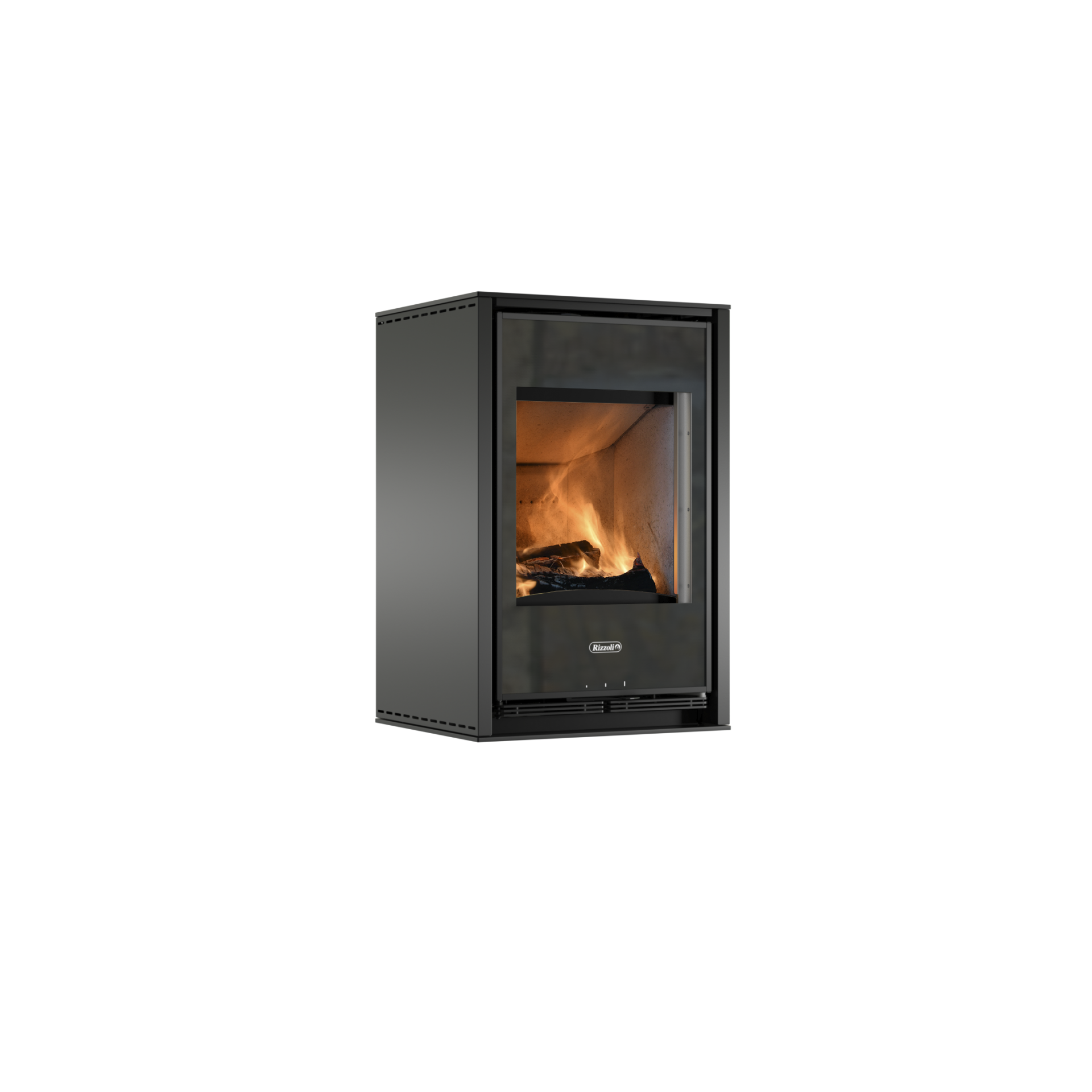 Die großzügige Sichtscheibe ermöglicht einen freien Blick auf das lebendige Flammenspiel und verleiht dem Feuer eine besondere Präsenz. Gleichzeitig sorgt die bewährte Rizzoli-Technik für eine gleichmäßige Wärmeabgabe und effizientes Heizen – zuverlässig, nachhaltig und komfortabel.