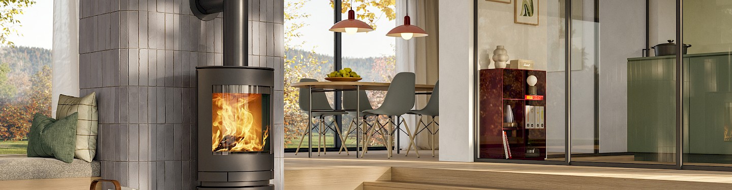 Die große Sichtscheibe eröffnet einen eindrucksvollen Blick auf das Flammenspiel und schafft eine lebendige, warme Atmosphäre. Dank moderner Verbrennungstechnik arbeitet der emotion S effizient, sauber und holzsparend – für nachhaltigen Heizkomfort und ein angenehmes Raumklima.