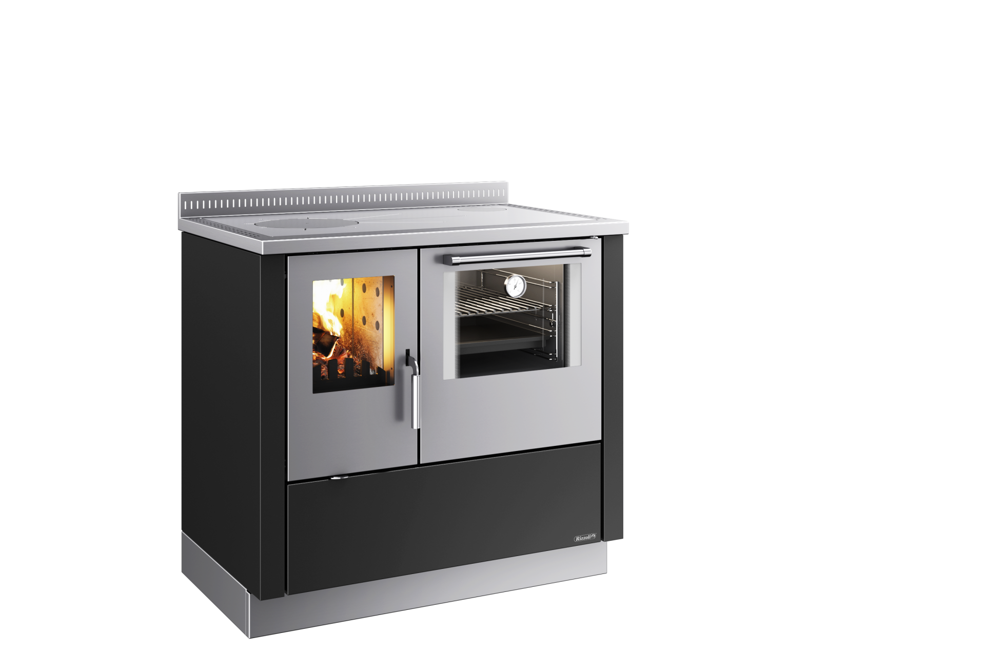 Die Rizzoli Serie ZVI steht für modernes Ofendesign mit maximaler Sicht auf das Feuer. Dank der großzügigen, dreiseitigen Verglasung wird die Flamme zum zentralen Gestaltungselement und schafft ein beeindruckendes Ambiente im Raum.